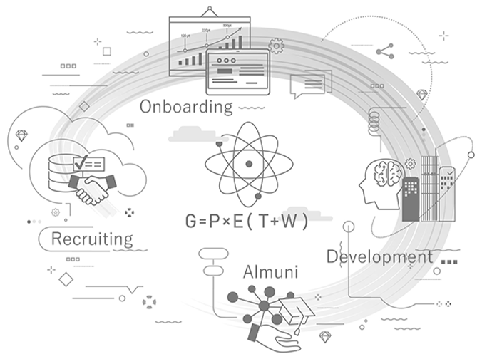 当社グループでは、社員ひとりひとりのパフォーマンスの最大化を目的として、2013年から人材に関する研究活動を行っています。「人は職場で良質な経験を重ねることで”育つ”」という考え方のもと、人材育成を科学的に測定・評価する取り組みを行っています。2014年から研究活動により得られた技術を採用活動にも応用を開始し、2016年に人材データを専門に研究を行う「人的資産研究所(Human Capital Lab)」を設立し、経営判断や人材育成に活かしています。